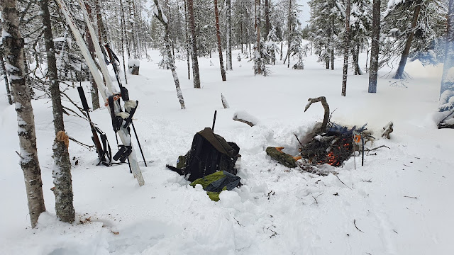 Tavallaan vähän koomista hiihtää 6 päivää sen ampumapaikan saamiseksi ja sitten jättää merkittävä seikka huomiotta ja ampua huono laukaus tykkänään ohi. Toisaalta näitä vaan metsästyksessä sattuu ja yksittäinen tilanne on aina yksittäinen tilanne. Olisihan sitä toki toivonut uutta mahdollisuutta, mutta tällä reissulla ei sellaista tullut. Joskushan nuo linnut kuulemma kestää useammankin yrityksen kokeilla ampua samasta paikasta.